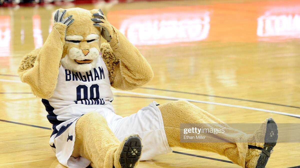 The BYU mascot, Cosmo the Cougar, went flying for a 22-foot alley-oop at the game against San Francisco on Saturday. Only the second time in history a guy wearing a mascot outfit was able to impress the ladies!!